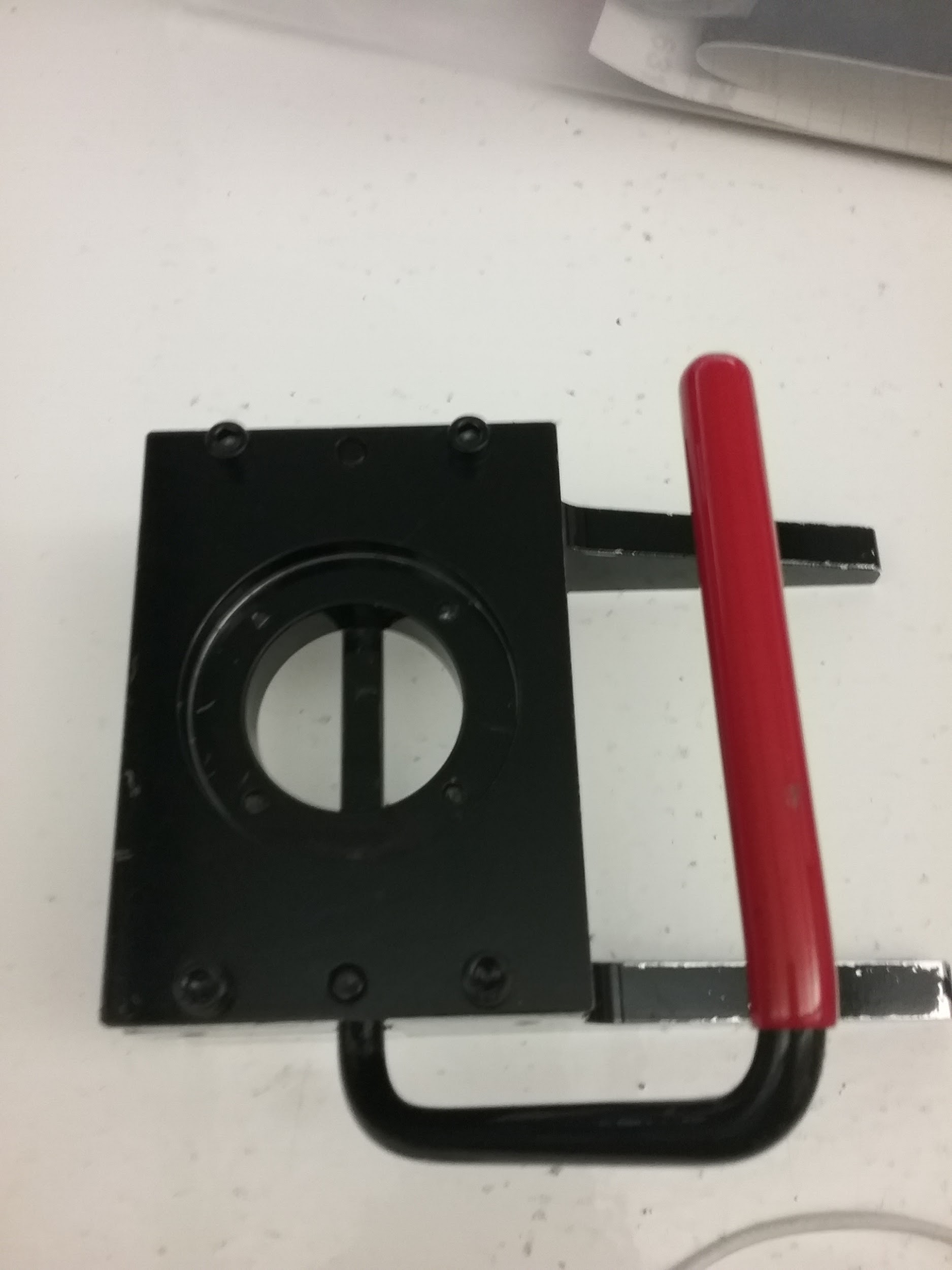 4. Next, flip the side with the **front of button**, **plastic disc**, and **image** to the back and pull down, firmly, on the handle. Then, release.